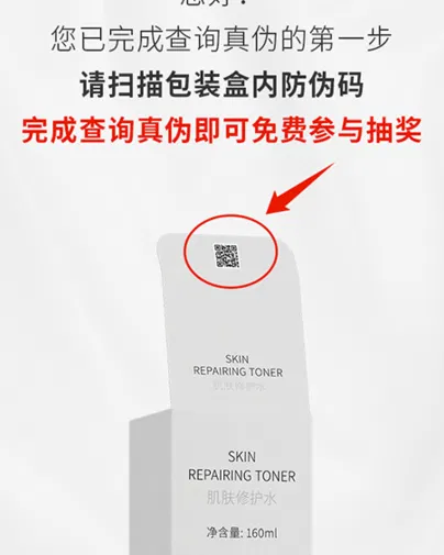 扫描产品内包装防伪码(此为示意图,包装防伪码位置以产品实际情况为准)