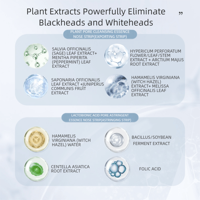 植萃毛孔净澈鼻贴组合 SET A: (3ml + 3ml) x 5 5组/盒 SET B: (3ml + 3ml) x 50 50组/盒 弱碱性黑头导出技术 以溶代撕净澈鼻头毛孔 Efficacy: Clears blackheads and whiteheads, refines pores