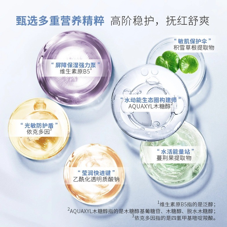 Eficacy: Small nozzle caliber mist fine, easy to be absorbed, the French hot spring water, vitamin B5, cranberry fruit extract and other ingredients, in-depth moisturizing, soothing discomfort, stabilizing the skin's emotions